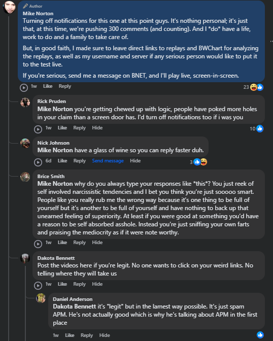 For example, in the screenshot above, a person criticizes my use of asterisks in my comments. My use of asterisks is simply a substitute for italicization, which the social media platform does not provide. Select italicization is good for voicing. That person’s criticism was personal, had nothing to do with my gaming, was completely unrelated to the topic of the post, and you can tell that by their use of “why do you always” they had been following me for a while…just waiting for a crowd’s approval to pounce—instead of just speaking their mind in general.
