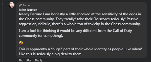As of this writing, I am still mentally processing how much games like Chess mean to some people’s identities, and how defensively reactive they are in efforts to preserve those identities.